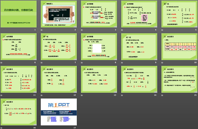 关键词:百分数和分数小数的互化教学课件,青岛版六年级上册数学PPT课件下载,六年级数学幻灯片课件下载,百分数和分数小数的互化PPT课件下载,.PPT格式;