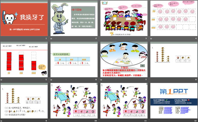 关键词:我换牙了教学课件,青岛版一年级下册数学PPT课件下载,一年级数学幻灯片课件下载,我换牙了PPT课件下载,.PPT格式;