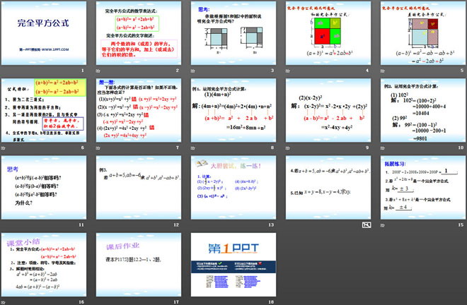 关键词:完全平方公式教学课件,青岛版七年级下册数学PPT课件下载,七年级数学幻灯片课件下载,完全平方公式PPT课件下载,.PPT格式;