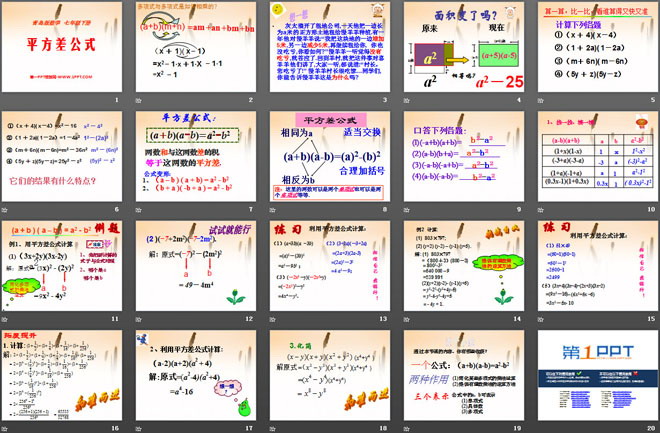 关键词:平方差公式教学课件,青岛版七年级下册数学PPT课件下载,七年级数学幻灯片课件下载,平方差公式PPT课件下载,.PPT格式;