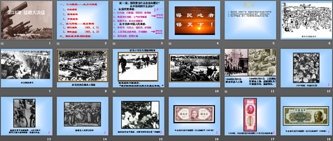 关键词:人民解放战争的胜利教学课件,战略大决战教学课件,人教版八年级上册历史PPT课件下载,八年级历史幻灯片课件下载,人民解放战争的胜利PPT课件下载,战略大决战PPT课件下载,.PPT格式;