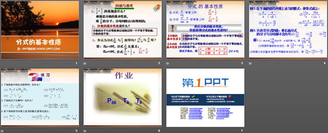 关键词:分式的基本性质教学课件,青岛版八年级上册数学PPT课件下载,八年级数学幻灯片课件下载,分式的基本性质PPT课件下载,.PPT格式;
