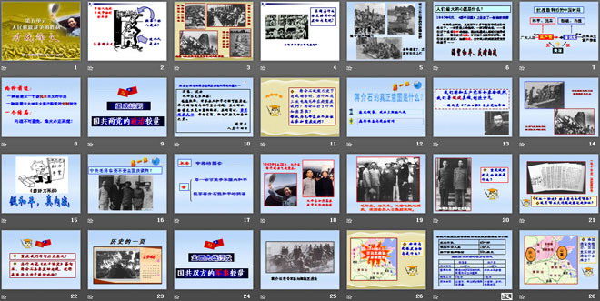 关键词:人民解放战争的胜利教学课件,内战烽火教学课件,人教版八年级上册历史PPT课件下载,八年级历史幻灯片课件下载,人民解放战争的胜利PPT课件下载,内战烽火PPT课件下载,.PPT格式;