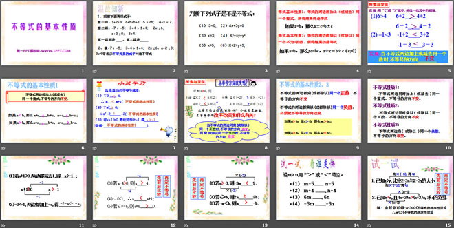 关键词:不等式的基本性质教学课件,青岛版八年级下册数学PPT课件下载,八年级数学幻灯片课件下载,不等式的基本性质PPT课件下载,.PPT格式;