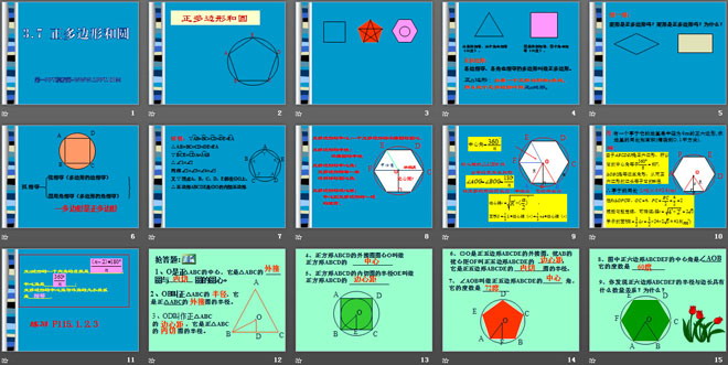 关键词:正多边形与圆教学课件,青岛版九年级上册数学PPT课件下载,九年级数学幻灯片课件下载,正多边形与圆PPT课件下载,.PPT格式;