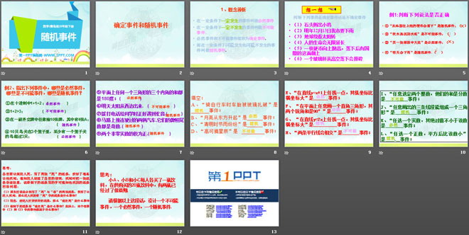 关键词:随机事件教学课件,青岛版九年级下册数学PPT课件下载,九年级数学幻灯片课件下载,随机事件PPT课件下载,.PPT格式;