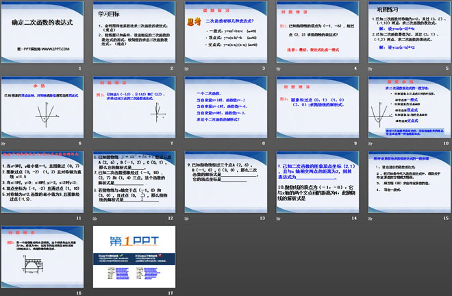 关键词:确定二次函数的表达式教学课件,青岛版九年级下册数学PPT课件下载,九年级数学幻灯片课件下载,确定二次函数的表达式PPT课件下载,.PPT格式;