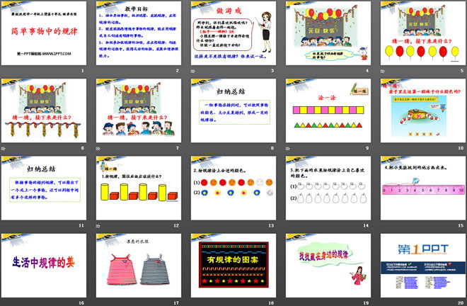 关键词:探索乐园教学课件,简单事物中的规律教学课件,冀教版一年级上册数学PPT课件下载,一年级数学幻灯片课件下载,探索乐园PPT课件下载,简单事物中的规律PPT课件下载,.PPT格式;