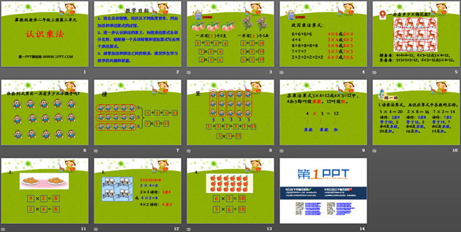 关键词:表内乘法教学课件,认识乘法教学课件,冀教版二年级上册数学PPT课件下载,二年级数学幻灯片课件下载,表内乘法PPT课件下载,认识乘法PPT课件下载,.PPT格式;