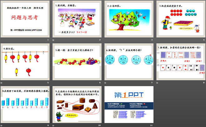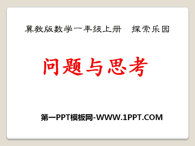 关键词:探索乐园教学课件,问题与思考教学课件,冀教版一年级上册数学PPT课件下载,一年级数学幻灯片课件下载,探索乐园PPT课件下载,问题与思考PPT课件下载,.PPT格式;