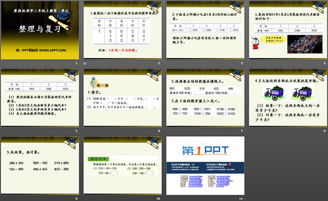 关键词:生活中的大数教学课件,整理与复习教学课件,冀教版三年级上册数学PPT课件下载,三年级数学幻灯片课件下载,生活中的大数PPT课件下载,整理与复习PPT课件下载,.PPT格式;