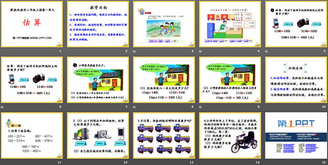 1、结合购买电器问题,经历万以内数的加、减法估算的过程。