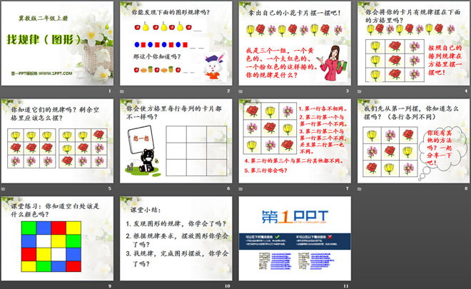 关键词:找规律图形教学课件,探索乐园教学课件,冀教版二年级上册数学PPT课件下载,二年级数学幻灯片课件下载,找规律图形PPT课件下载,探索乐园PPT课件下载,.PPT格式;