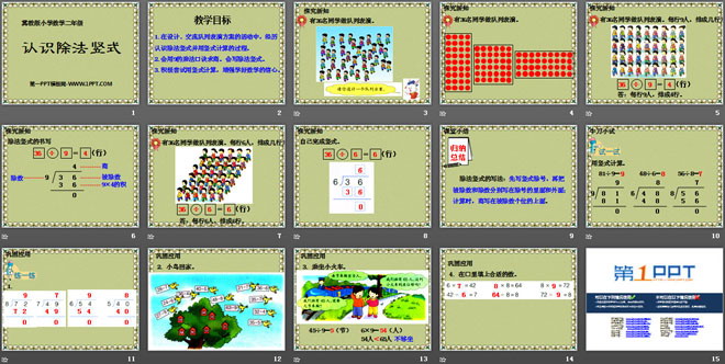 关键词:表内乘法和除法教学课件,认识除法竖式教学课件,冀教版二年级上册数学PPT课件下载,二年级数学幻灯片课件下载,表内乘法和除法PPT课件下载,认识除法竖式PPT课件下载,.PPT格式;