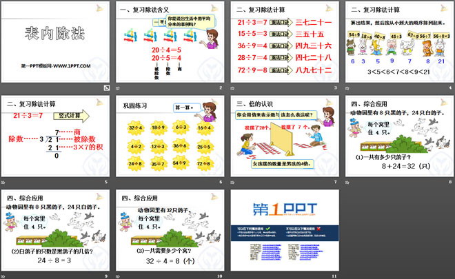 关键词:表内除法教学课件,冀教版二年级上册数学PPT课件下载,二年级数学幻灯片课件下载,表内除法PPT课件下载,.PPT格式;