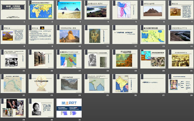 关键词:人类文明的开端教学课件,大河流域人类文明的摇篮教学课件,人教版九年级上册历史PPT课件下载,九年级历史幻灯片课件下载,人类文明的开端PPT课件下载,大河流域人类文明的摇篮PPT课件下载,.PPT格式;