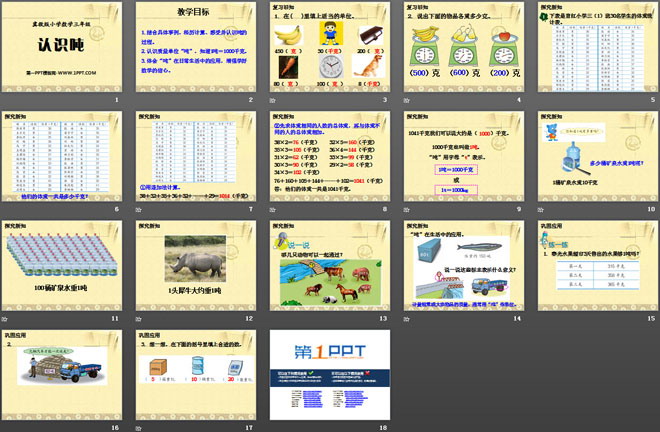 关键词:吨的认识教学课件,认识吨教学课件,冀教版三年级上册数学PPT课件下载,三年级数学幻灯片课件下载,吨的认识PPT课件下载,认识吨PPT课件下载,.PPT格式;