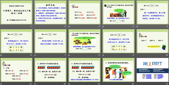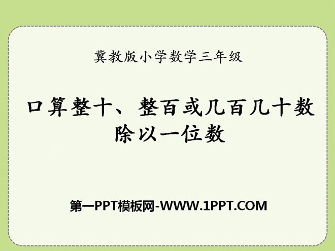 关键词:两三位数除以一位数教学课件,口算整十整百或几百几十数除以一位数教学课件,冀教版三年级上册数学PPT课件下载,三年级数学幻灯片课件下载,两三位数除以一位数PPT课件下载,口算整十整百或几百几十数除以一位数PPT课件下载,.PPT格式;