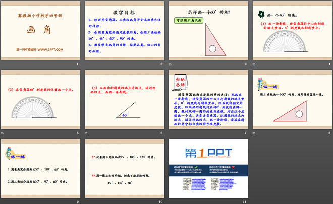 关键词:线和角教学课件,画角教学课件,冀教版四年级上册数学PPT课件下载,四年级数学幻灯片课件下载,线和角PPT课件下载,画角PPT课件下载,.PPT格式;