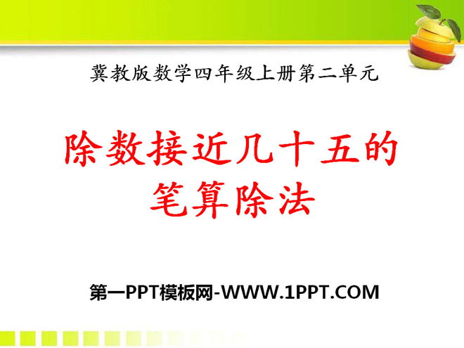 关键词:三位数除以两位数教学课件,除数接近几十五的笔算除法教学课件,冀教版四年级上册数学PPT课件下载,四年级数学幻灯片课件下载,三位数除以两位数PPT课件下载,除数接近几十五的笔算除法PPT课件下载,.PPT格式;