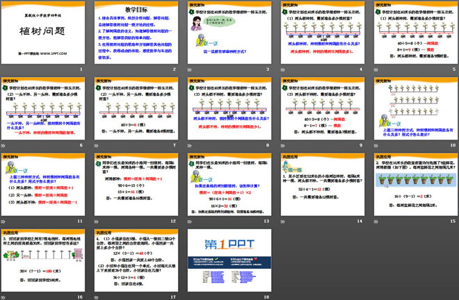 关键词:探索乐园教学课件,植树问题教学课件,冀教版四年级上册数学PPT课件下载,四年级数学幻灯片课件下载,探索乐园PPT课件下载,植树问题PPT课件下载,.PPT格式;