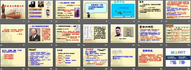 关键词:科学技术与思想文化教学课件,人教版八年级上册历史PPT课件下载,八年级历史幻灯片课件下载,科学技术与思想文化PPT课件下载,.PPT格式;