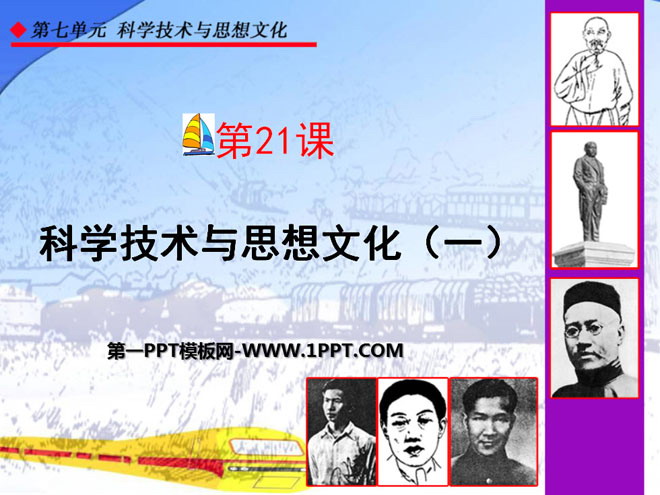 关键词:科学技术与思想文化教学课件,人教版八年级上册历史PPT课件下载,八年级历史幻灯片课件下载,科学技术与思想文化PPT课件下载,.PPT格式;