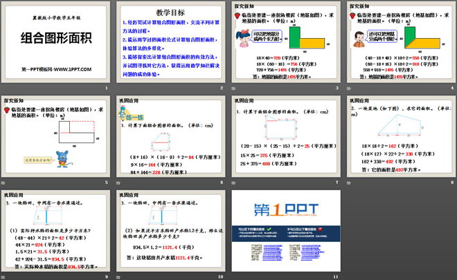 关键词:多边形的面积教学课件,组合图形面积教学课件,冀教版五年级上册数学PPT课件下载,五年级数学幻灯片课件下载,多边形的面积PPT课件下载,组合图形面积PPT课件下载,.PPT格式;