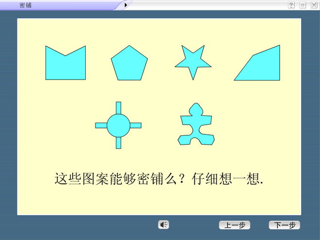 关键词:探索乐园教学课件,密铺教学课件,冀教版五年级上册数学Flash动画课件下载,五年级数学动画课件下载,探索乐园Flash课件下载,密铺Flash课件下载,.SWF格式;