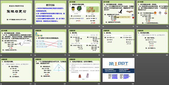 关键词:方程教学课件,整理与复习教学课件,冀教版五年级上册数学PPT课件下载,五年级数学幻灯片课件下载,方程PPT课件下载,整理与复习PPT课件下载,.PPT格式;