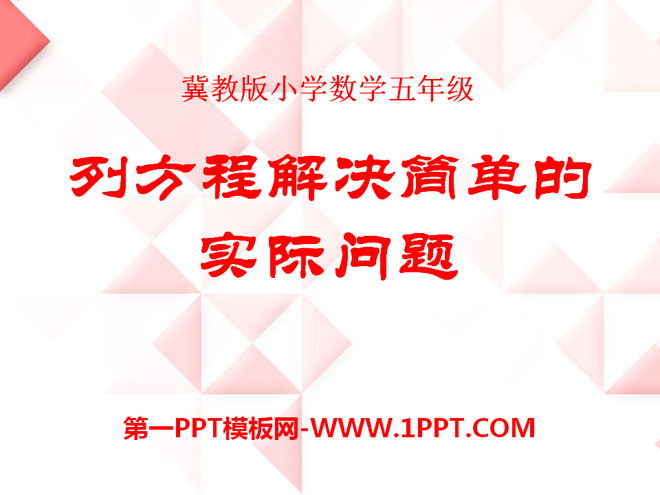 关键词:方程教学课件,列方程解决简单的实际问题教学课件,冀教版五年级上册数学PPT课件下载,五年级数学幻灯片课件下载,方程PPT课件下载,列方程解决简单的实际问题PPT课件下载,.PPT格式;