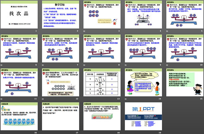关键词:探索乐园教学课件,找次品教学课件,冀教版六年级上册数学PPT课件下载,六年级数学幻灯片课件下载,探索乐园PPT课件下载,找次品PPT课件下载,.PPT格式;