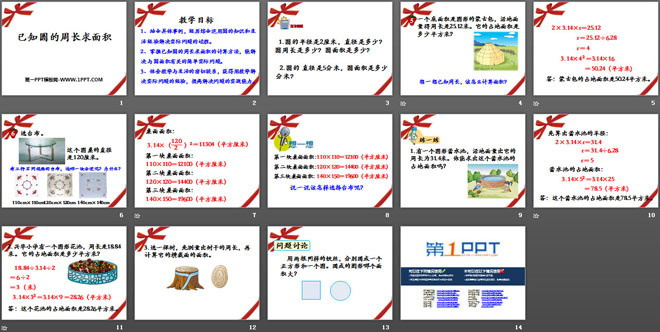 《已知圆的周长求面积》圆的周长和面积PPT课件