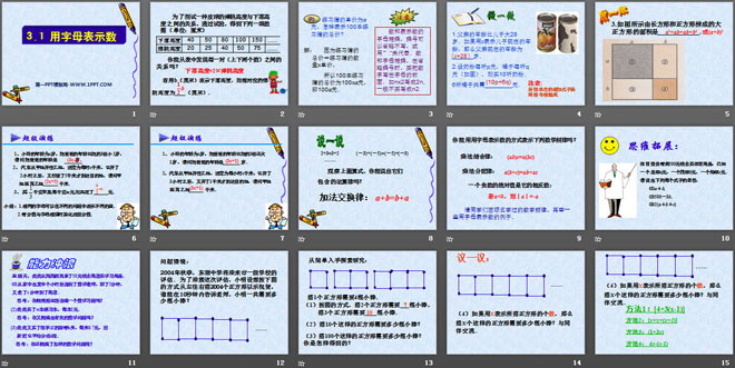 关键词:用字母表示数教学课件,冀教版七年级上册数学PPT课件下载,七年级数学幻灯片课件下载,用字母表示数PPT课件下载,.PPT格式;