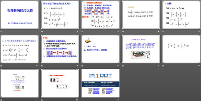 关键词:有理数的混合运算教学课件,冀教版七年级上册数学PPT课件下载,七年级数学幻灯片课件下载,有理数的混合运算PPT课件下载,.PPT格式;