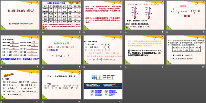 关键词:有理数的减法教学课件,冀教版七年级上册数学PPT课件下载,七年级数学幻灯片课件下载,有理数的减法PPT课件下载,.PPT格式;