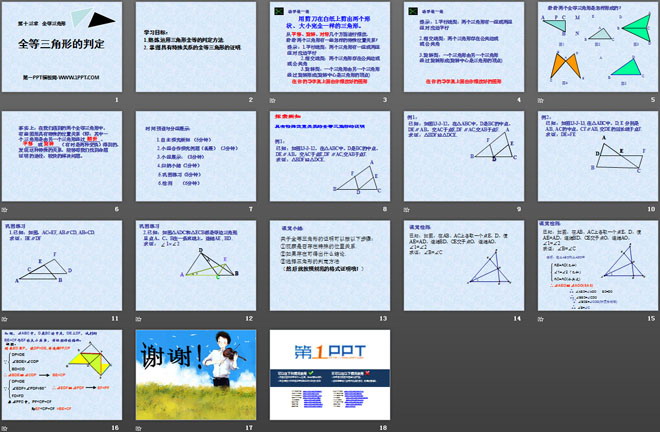 关键词:全等三角形的判定教学课件,冀教版八年级上册数学PPT课件下载,八年级数学幻灯片课件下载,全等三角形的判定PPT课件下载,.PPT格式;