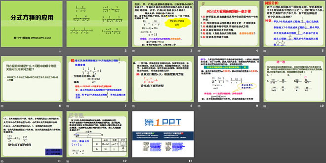 关键词:分式方程的应用教学课件,冀教版八年级上册数学PPT课件下载,八年级数学幻灯片课件下载,分式方程的应用PPT课件下载,.PPT格式;