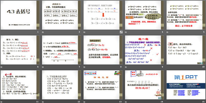 关键词:去括号教学课件,冀教版七年级上册数学PPT课件下载,七年级数学幻灯片课件下载,去括号PPT课件下载,.PPT格式;