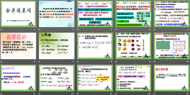 关键词:合并同类项教学课件,冀教版七年级上册数学PPT课件下载,七年级数学幻灯片课件下载,合并同类项PPT课件下载,.PPT格式;