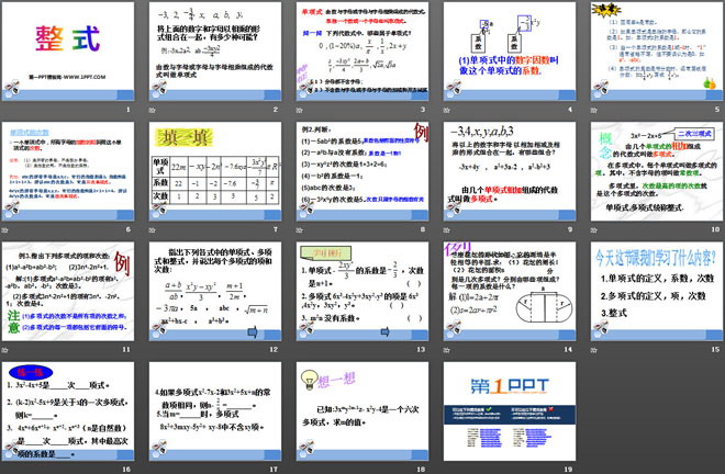 关键词:整式教学课件,冀教版七年级上册数学PPT课件下载,七年级数学幻灯片课件下载,整式PPT课件下载,.PPT格式;