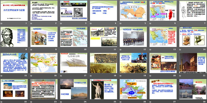 关键词:古代文明的传播与发展教学课件,古代世界的战争与征服教学课件,人教版九年级上册历史PPT课件下载,九年级历史幻灯片课件下载,古代文明的传播与发展PPT课件下载,古代世界的战争与征服PPT课件下载,.PPT格式;