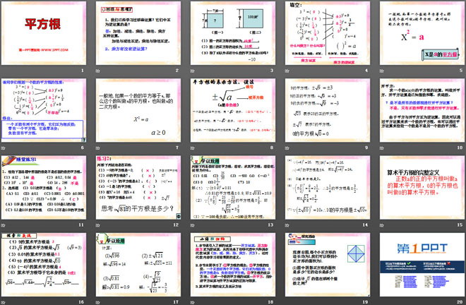 关键词:平方根教学课件,冀教版八年级上册数学PPT课件下载,八年级数学幻灯片课件下载,平方根PPT课件下载,.PPT格式;