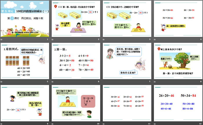 关键词:冀教版一年级下册数学PPT课件免费下载,两位数加减整十数PPT下载,.PPT格式;
