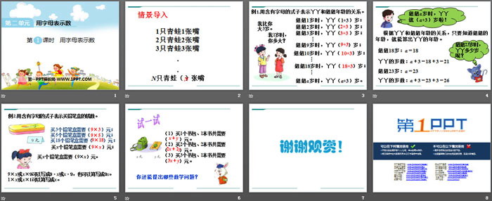 关键词:冀教版四年级下册数学PPT课件免费下载,用字母表示数PPT下载,.PPT格式;