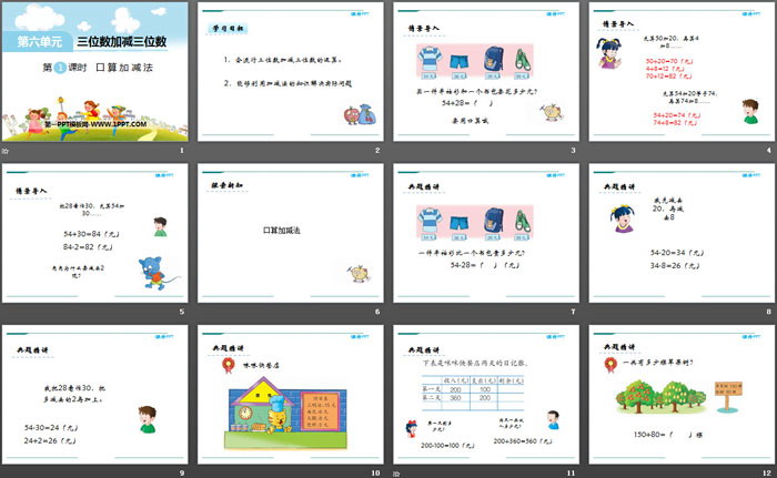 关键词:冀教版二年级下册数学PPT课件免费下载,口算加减法PPT下载,.PPT格式;
