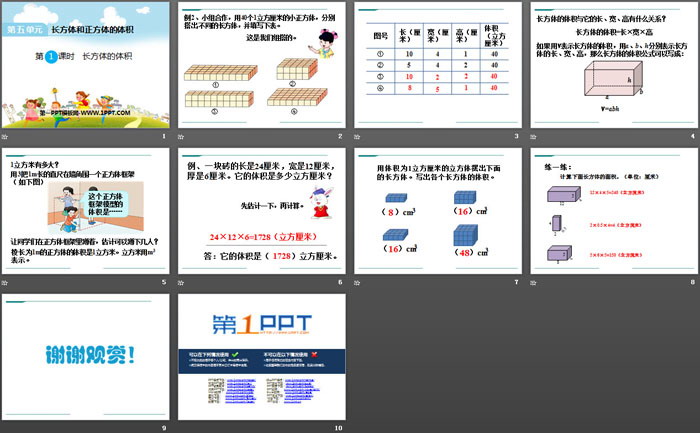 关键词:冀教版五年级下册数学PPT课件免费下载,长方体的体积PPT下载,.PPT格式;