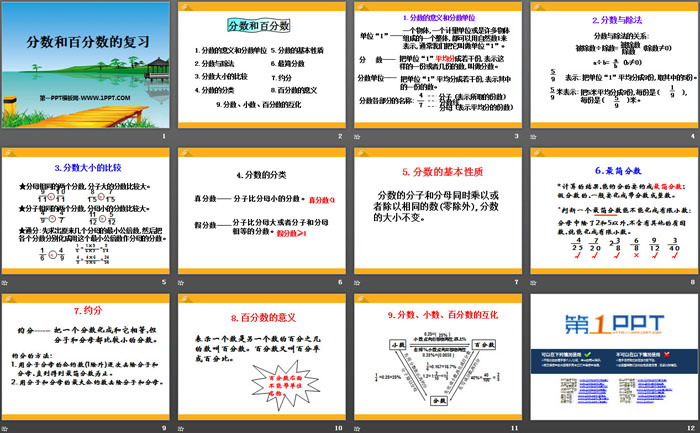 关键词:冀教版六年级下册数学PPT课件免费下载,分数和百分数的复习PPT下载,.PPT格式;