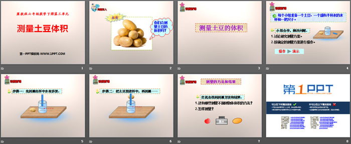 关键词:冀教版六年级下册数学PPT课件免费下载,测量土豆体积PPT下载,.PPT格式;