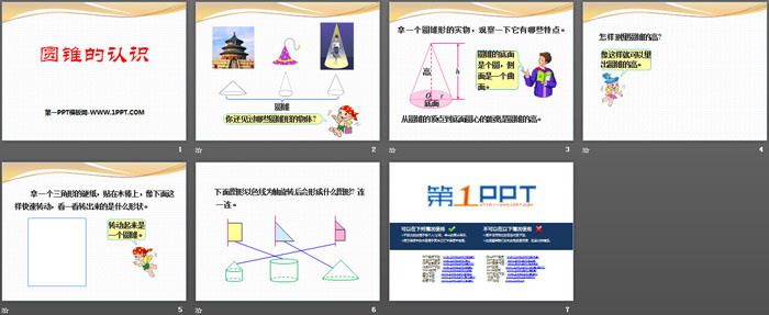 关键词:冀教版六年级下册数学PPT课件免费下载,圆锥的认识PPT下载,.PPT格式;